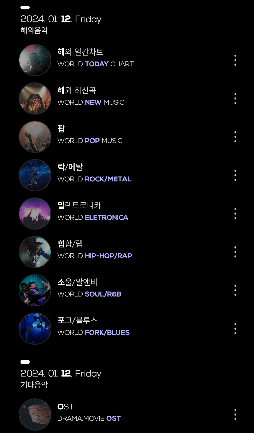 해외 음악도 역시 장르별로 분류를 해 놓았네요.