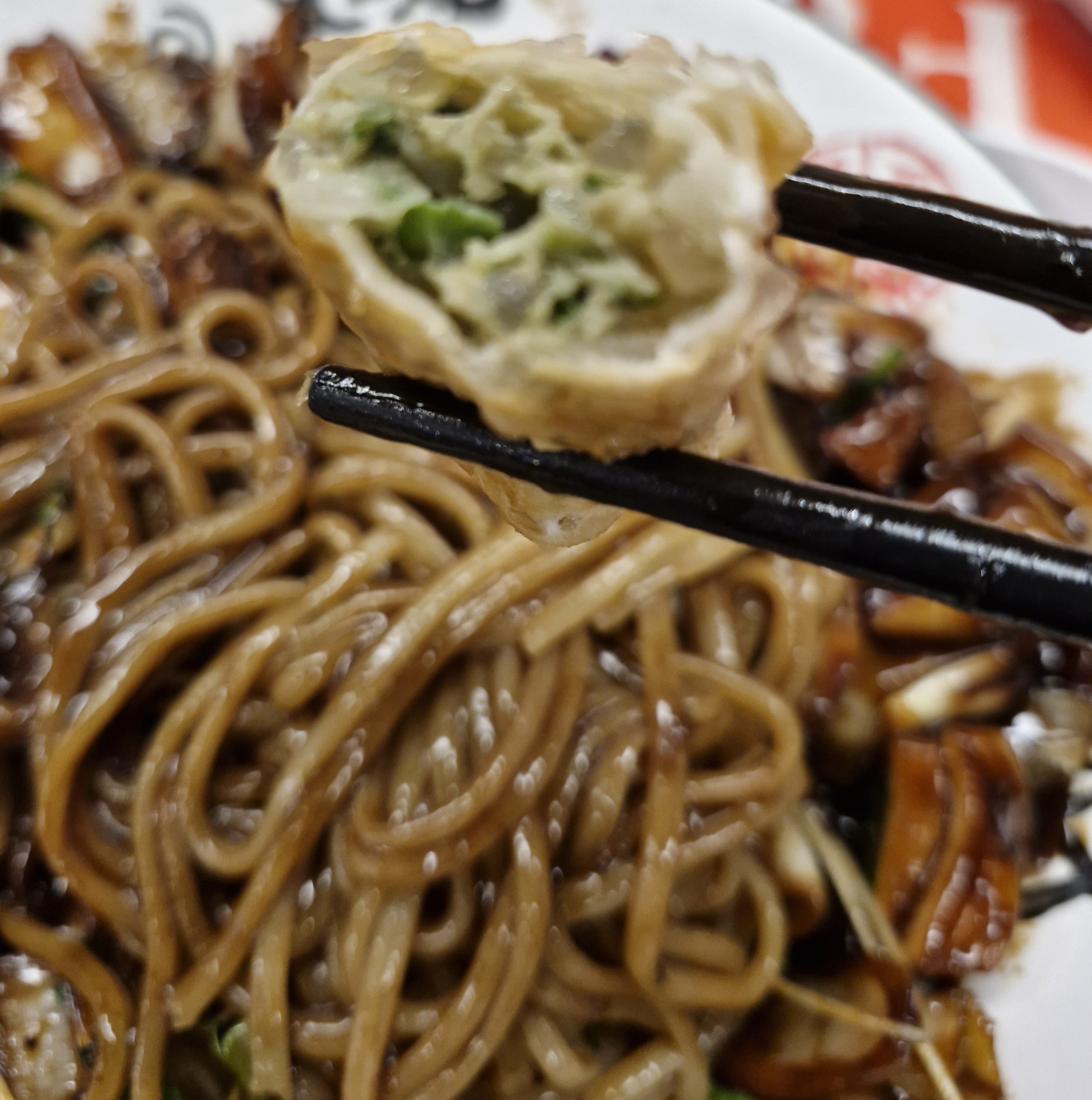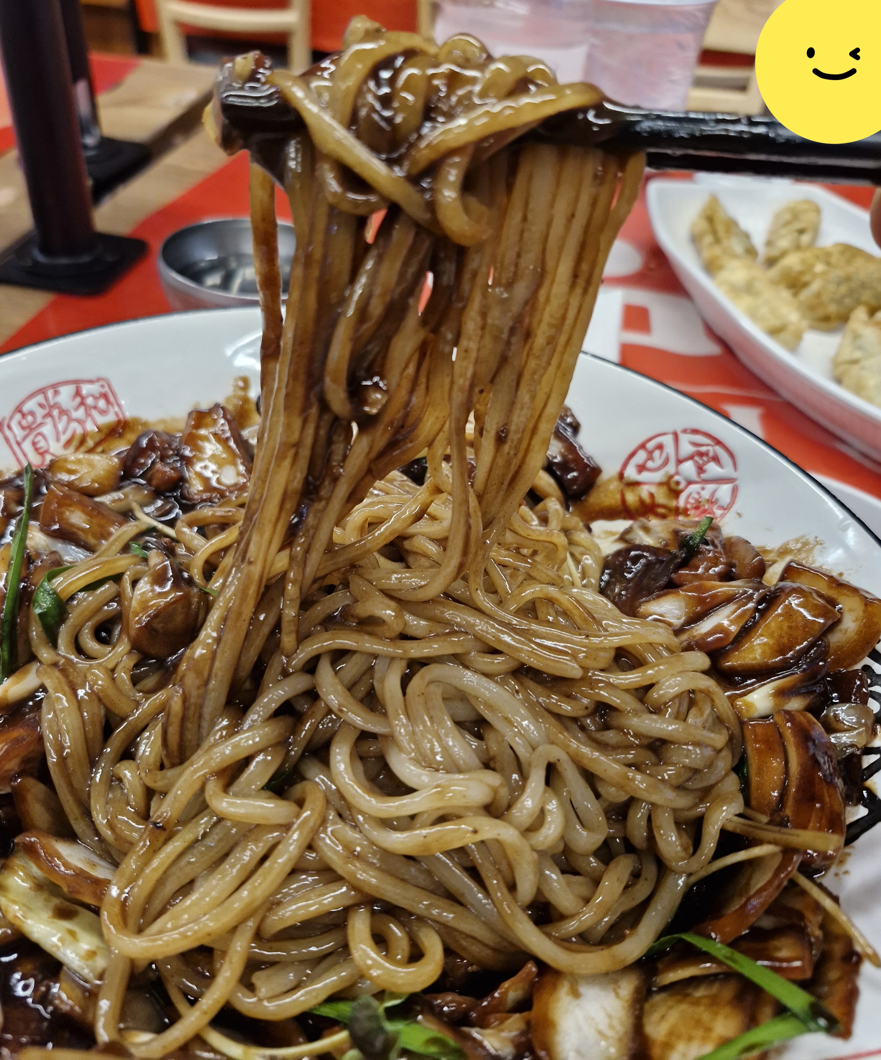 면을 한 젓가락 집은 모습으로, 맛은 깔끔하고 괜찮았다.