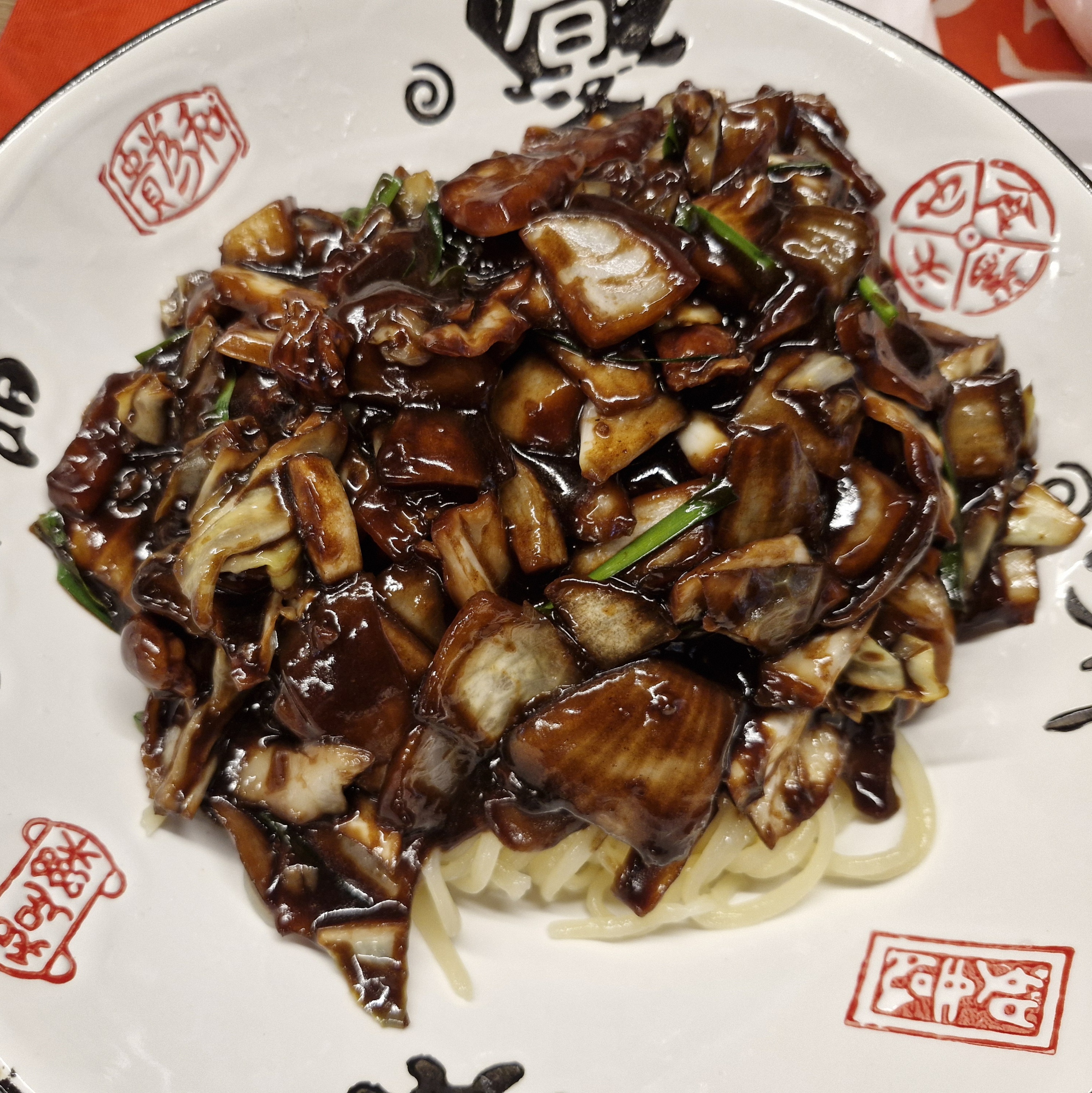 면에 짜장소스를 부어놓은 모습.