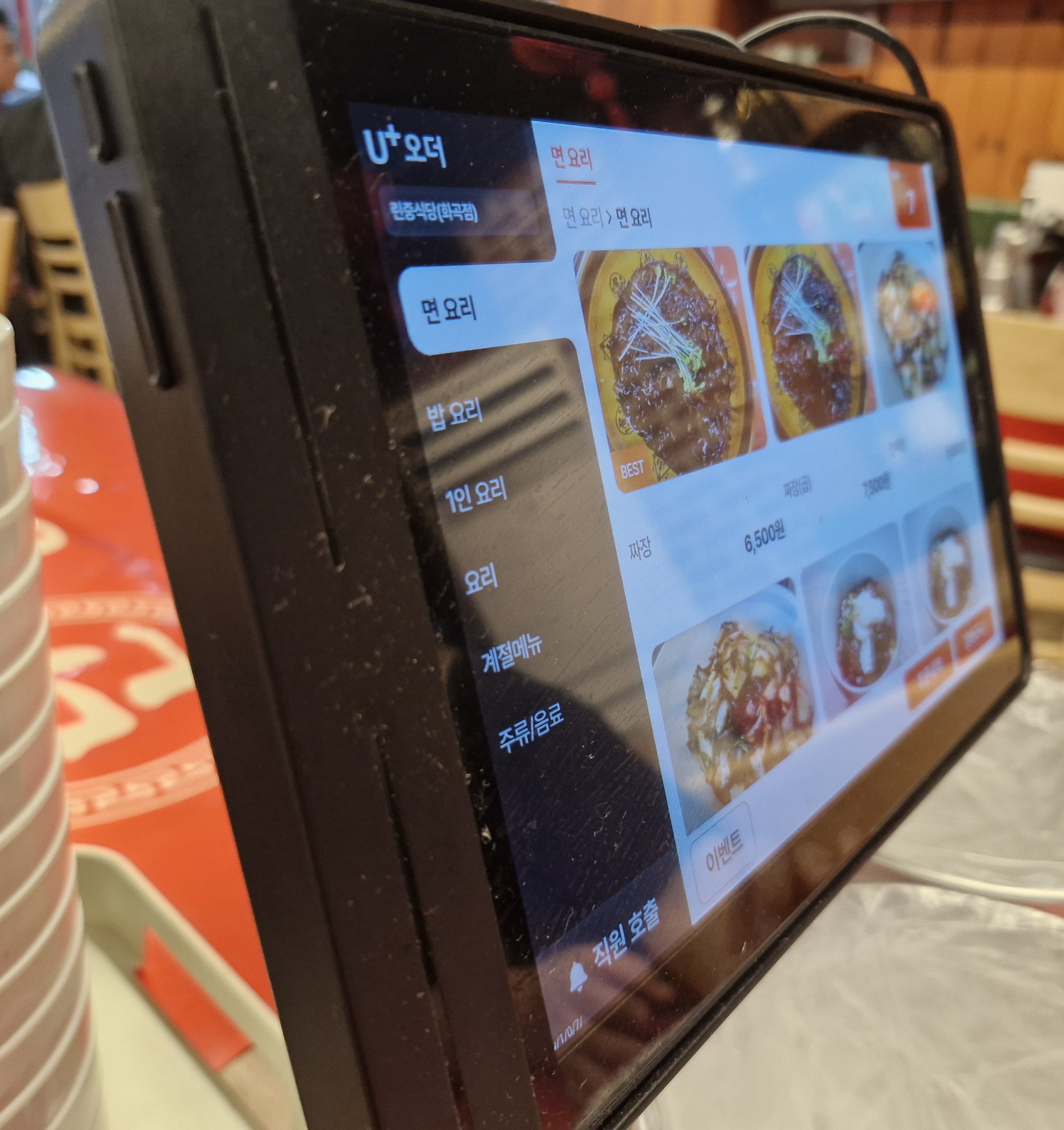 주문은 테이블 맨 끝에 있는 터치스크린으로 하면 된다.