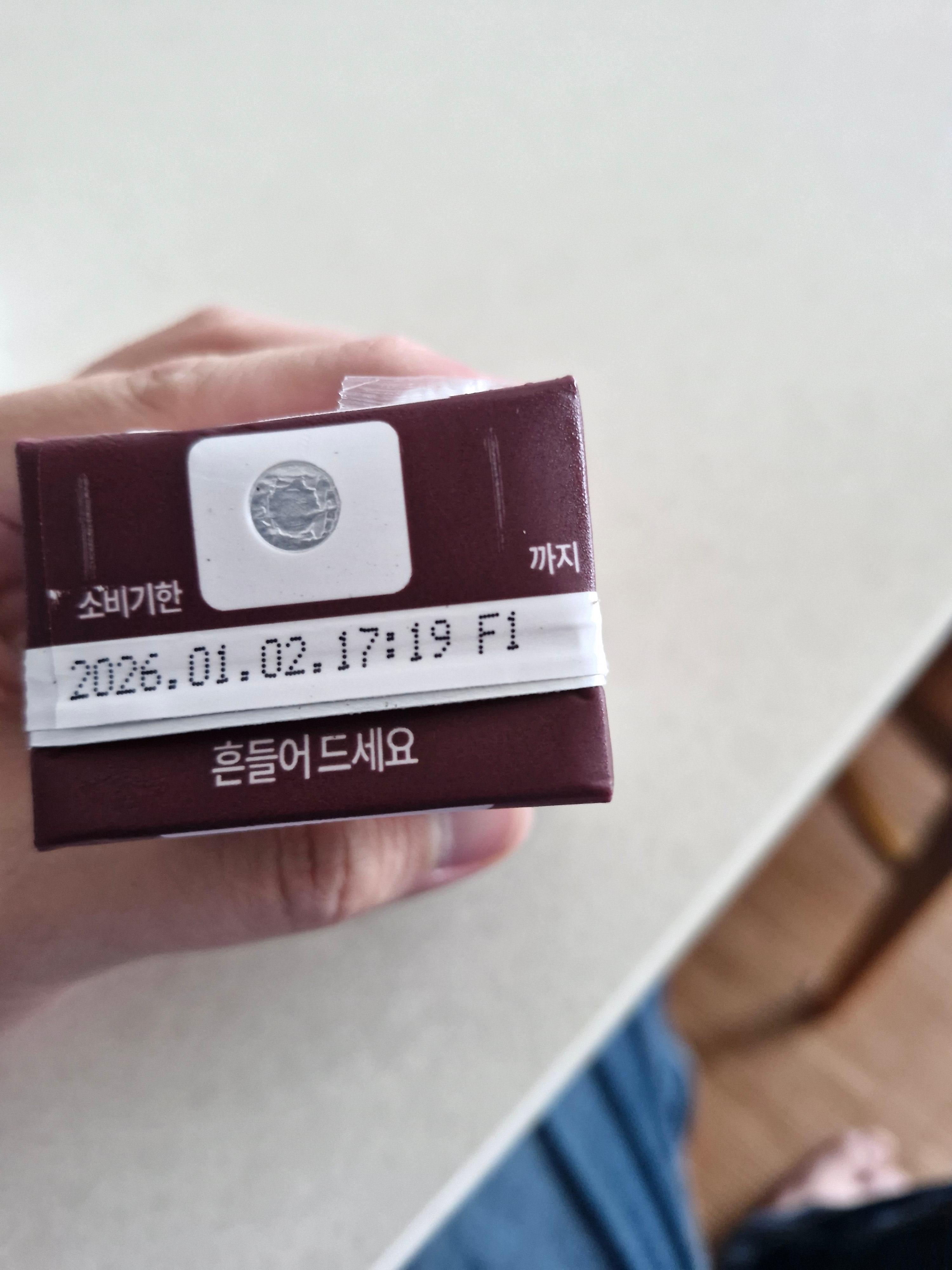 제품 윗부분에 쓰여있는 "흔들어 드세요"라는 문구.