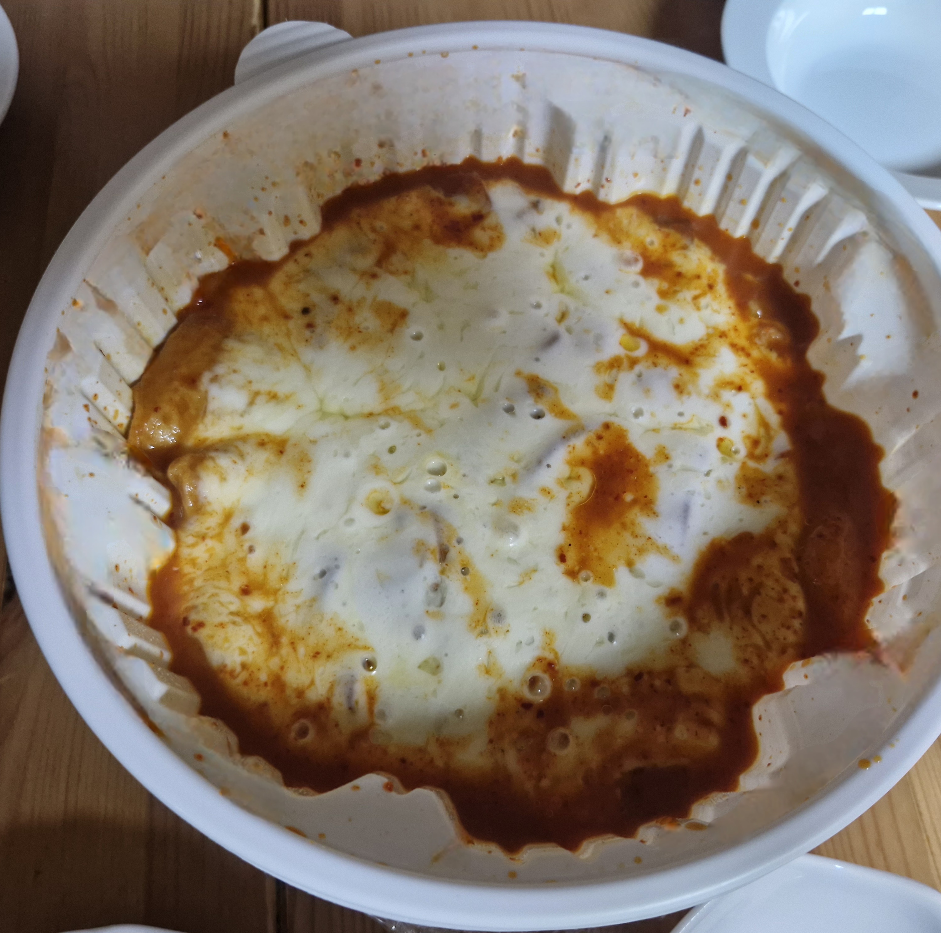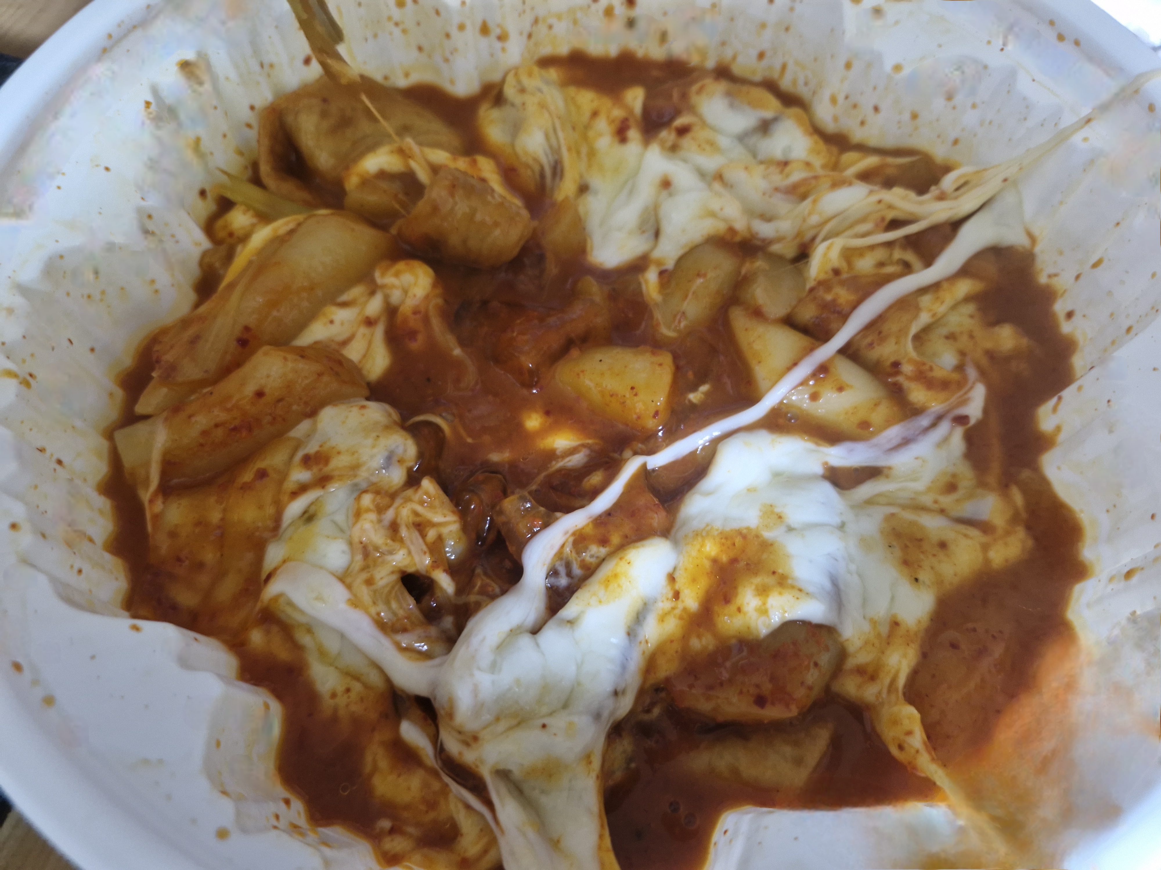이렇게 매운 떡볶이에 피자치즈가 올려져 있어서