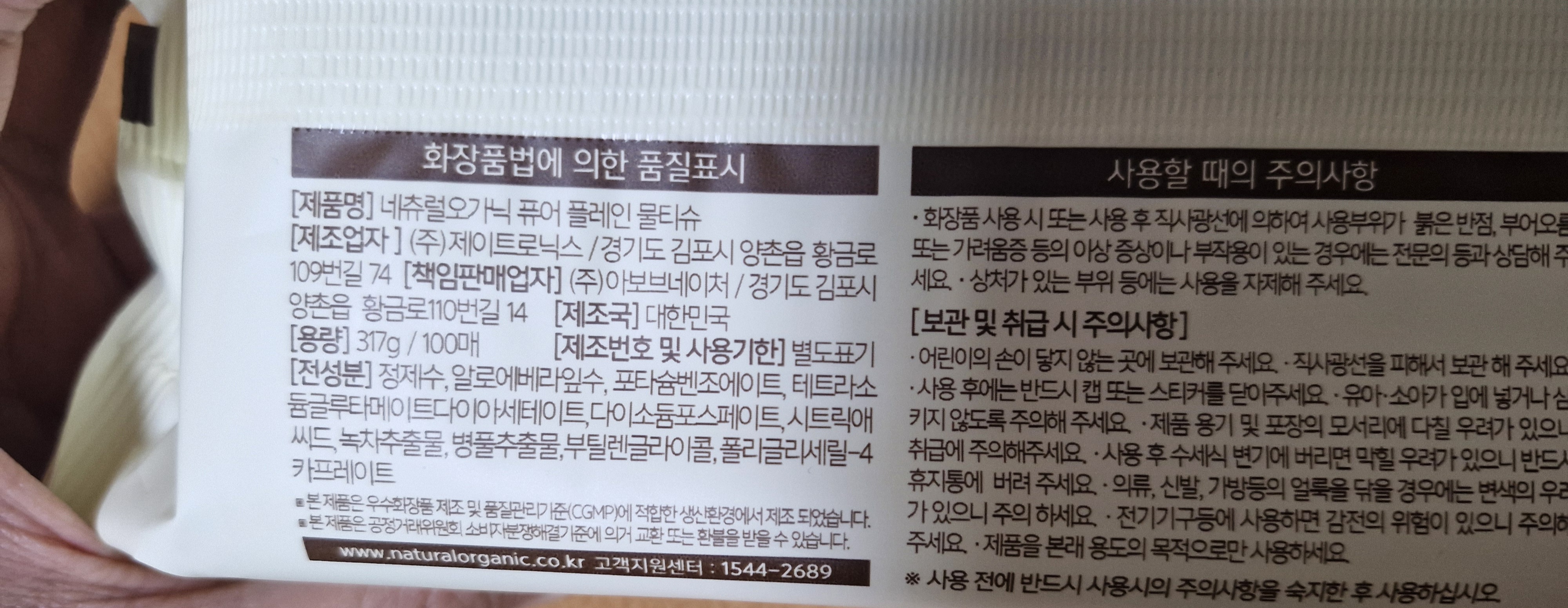 네츄럴 오가닉 물휴지