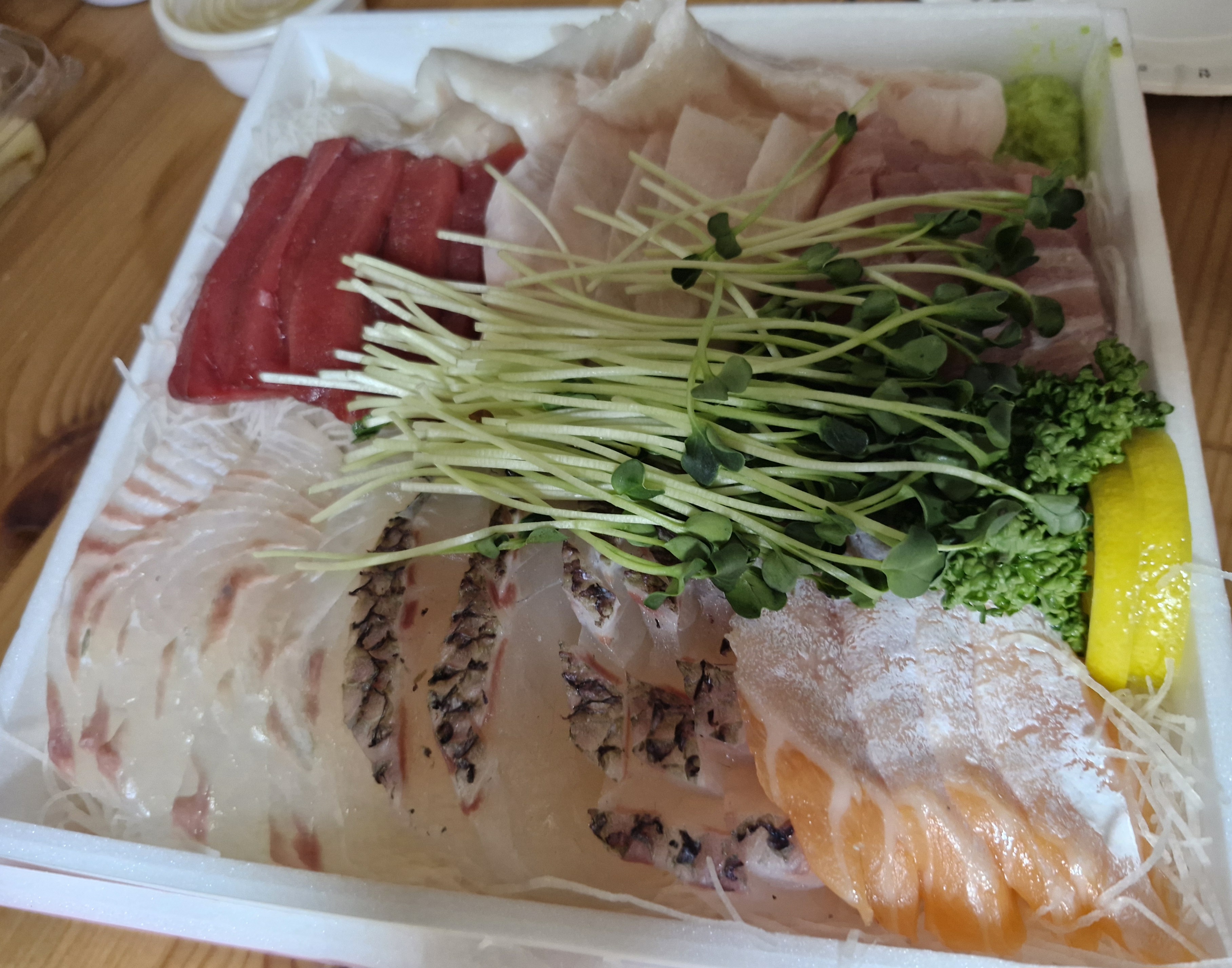 뚜껑을 열면 나오는 맛있는 모둠회.