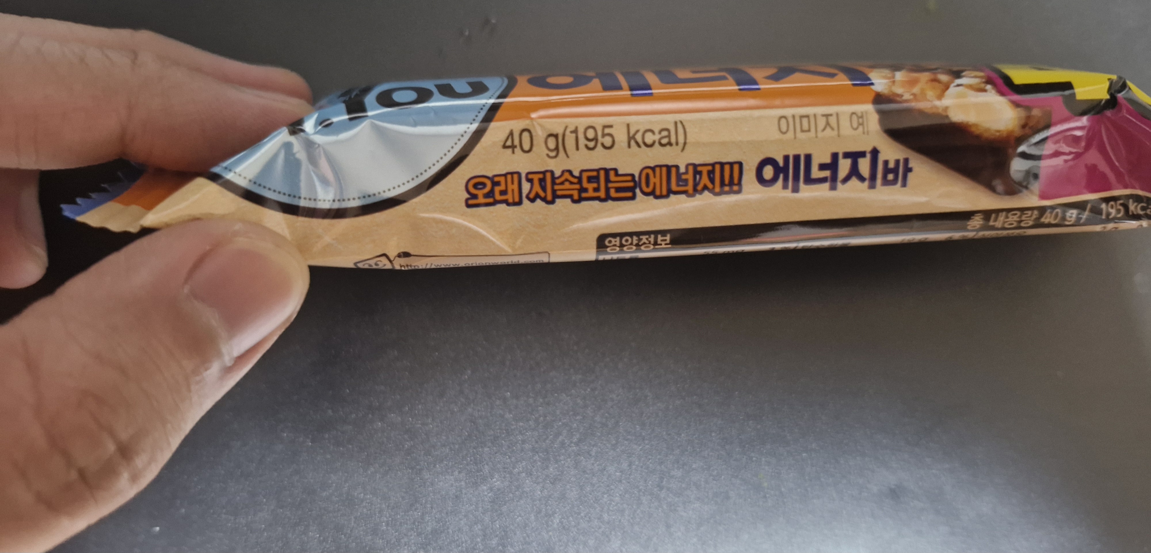 제품 아랫부분에 40g기준 195㎉이라는 표시가 있다.