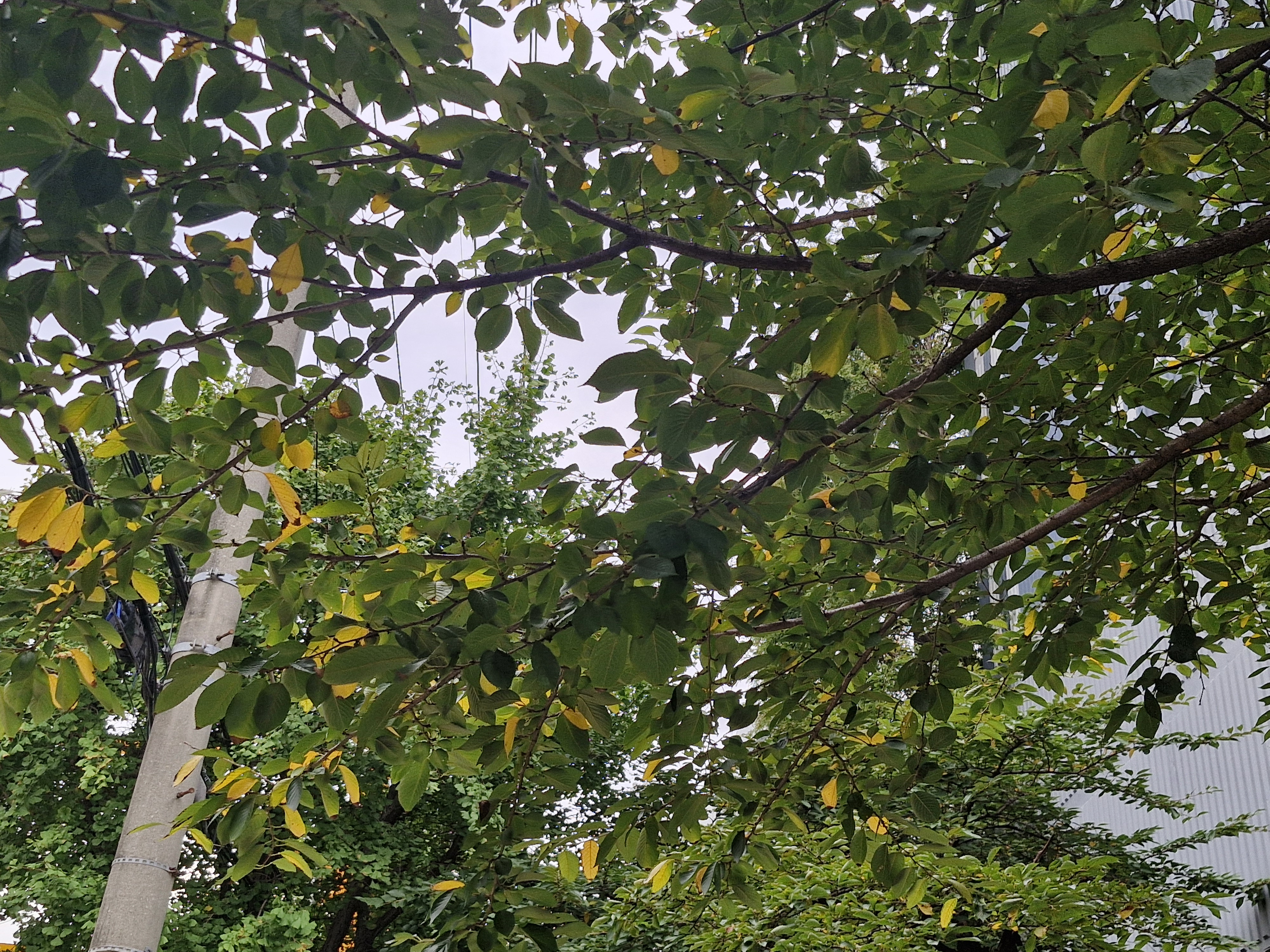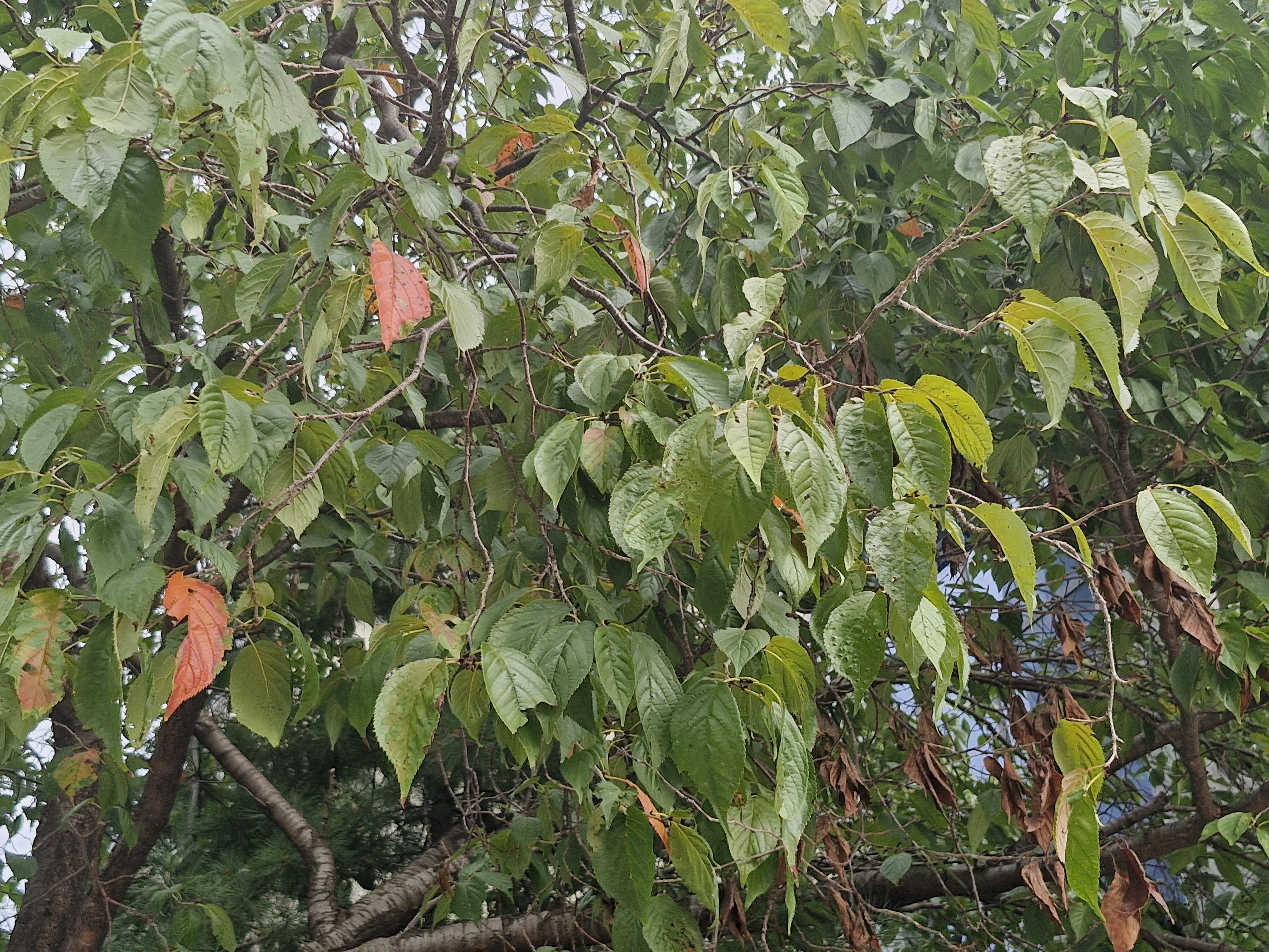 단풍 잎이 노랗게 물들어 가고 있는 모습.
