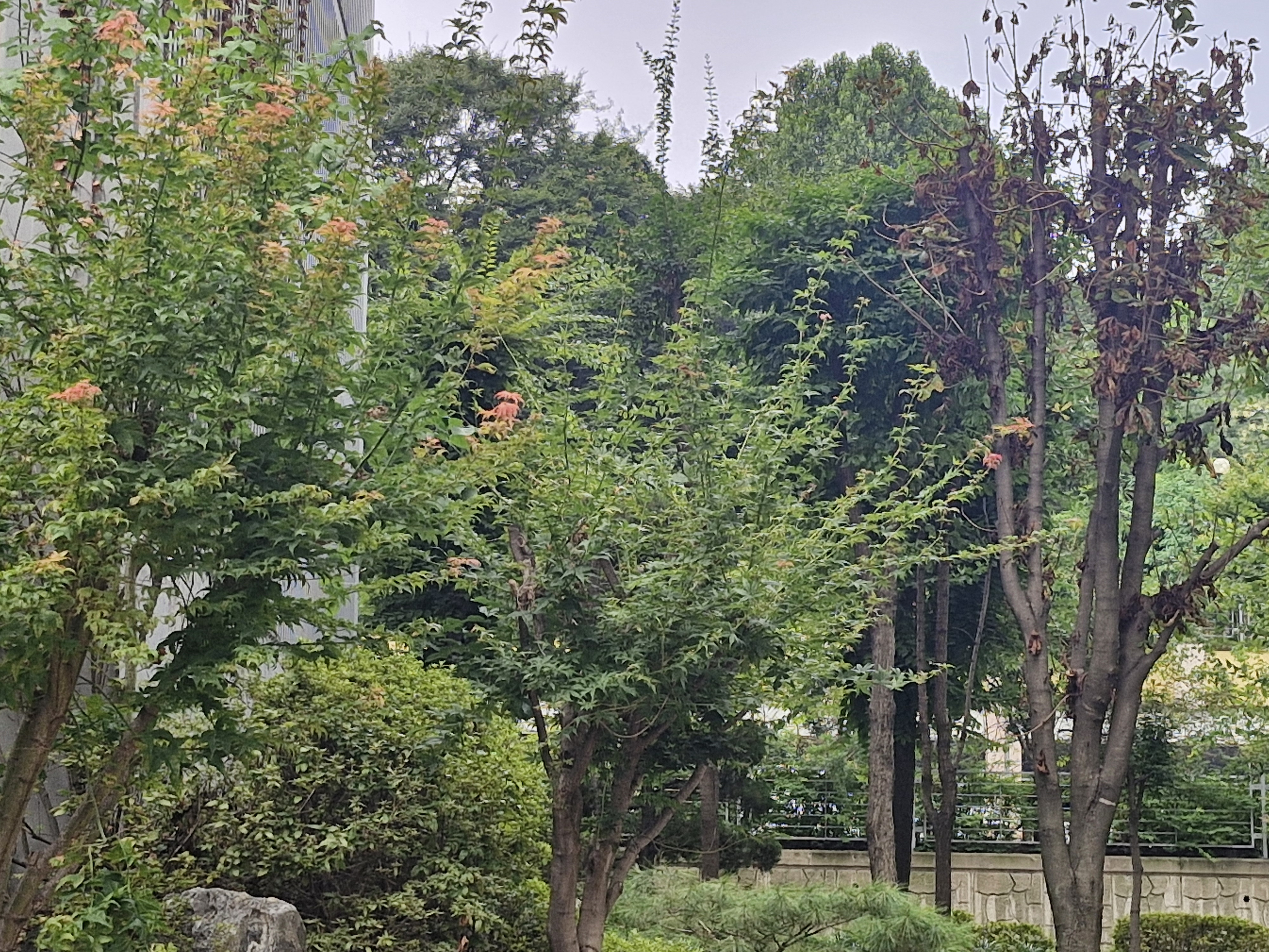 점점 붉은 빛으로 물들기 시작하고 있는 단풍나무.