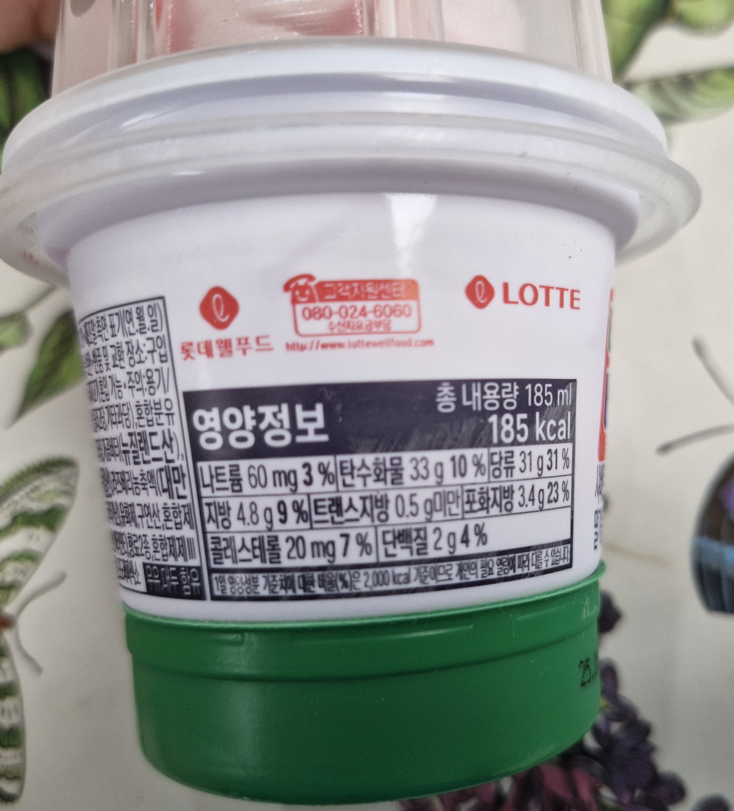 그 옆에 영양정보가 자세히 표시되어 있다.