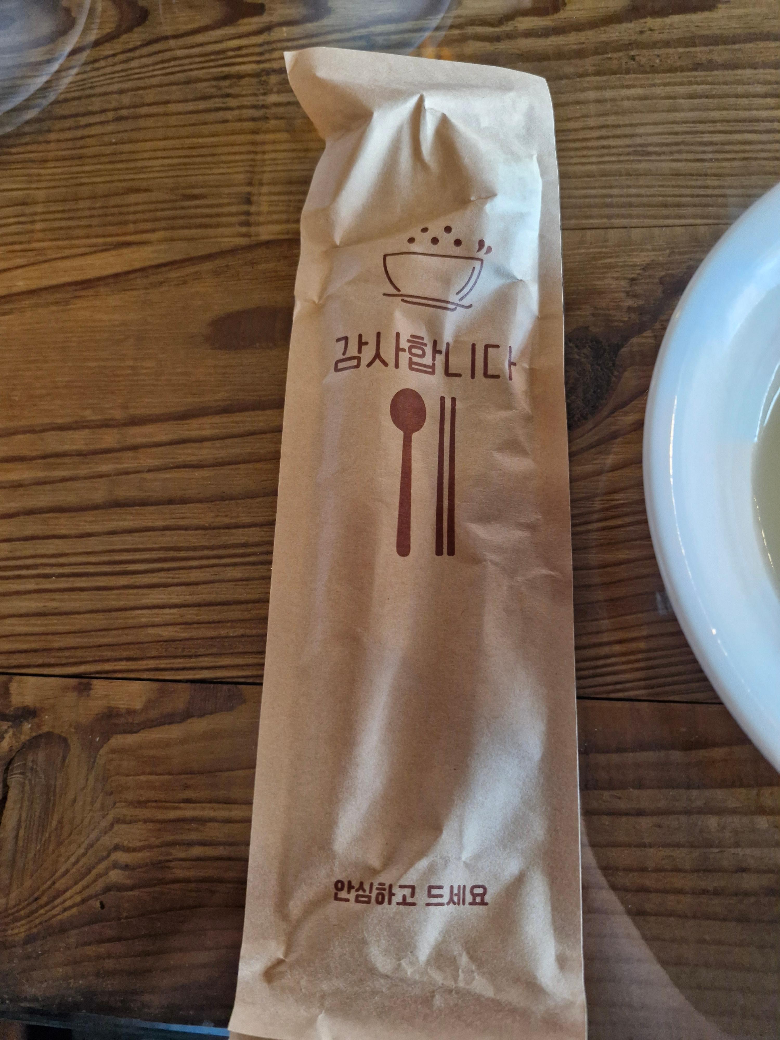수저집 뒷면에 "감사합니다 안심하고 드세요"라는