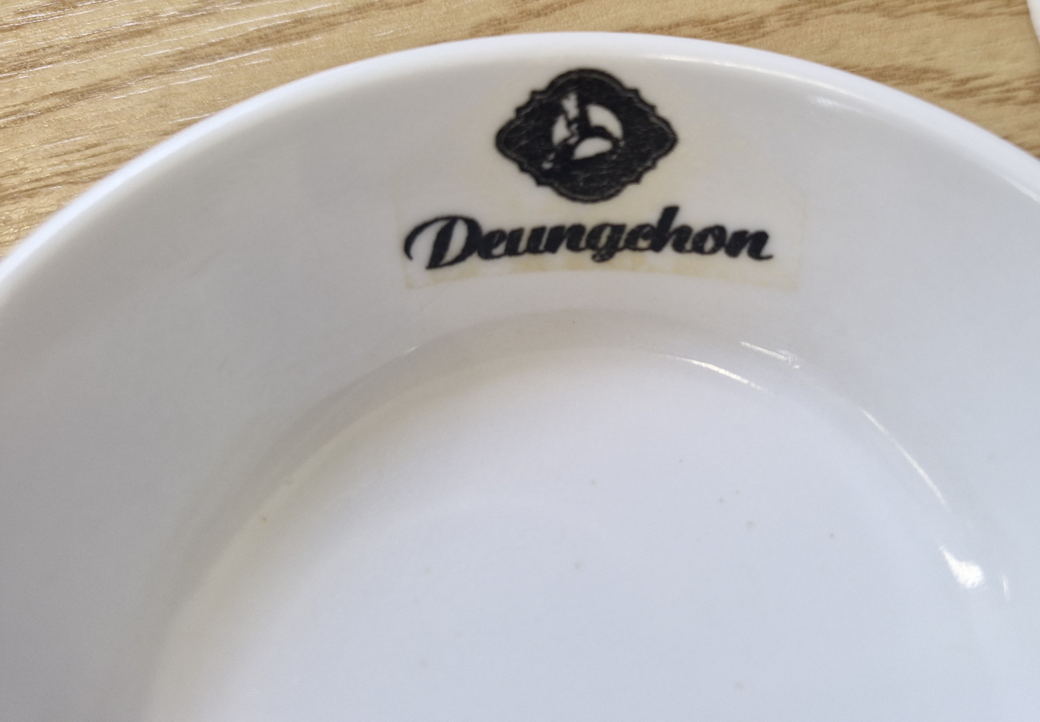 그릇의 끝 부분에 새겨진 등촌샤브칼국수의 로고.