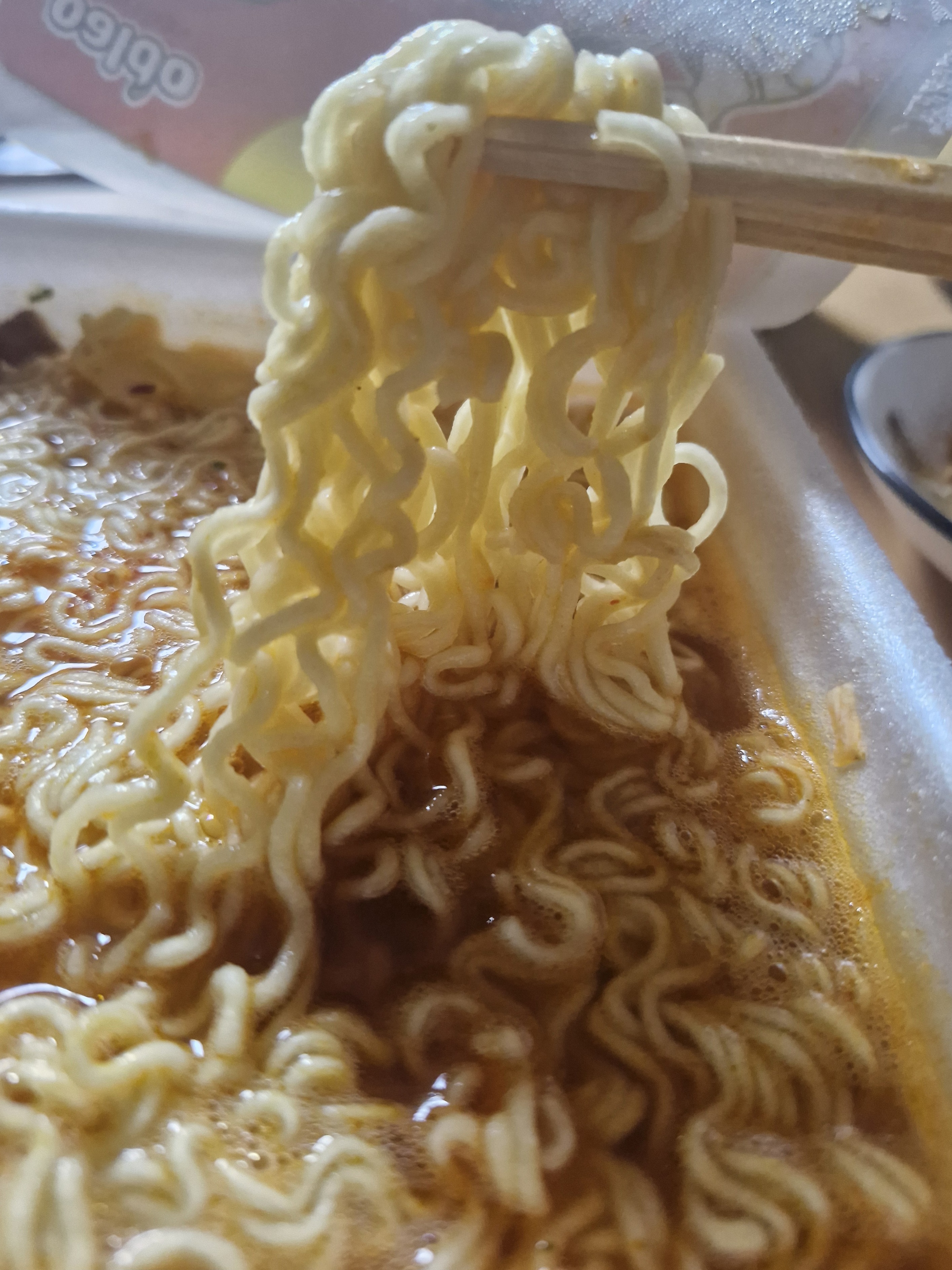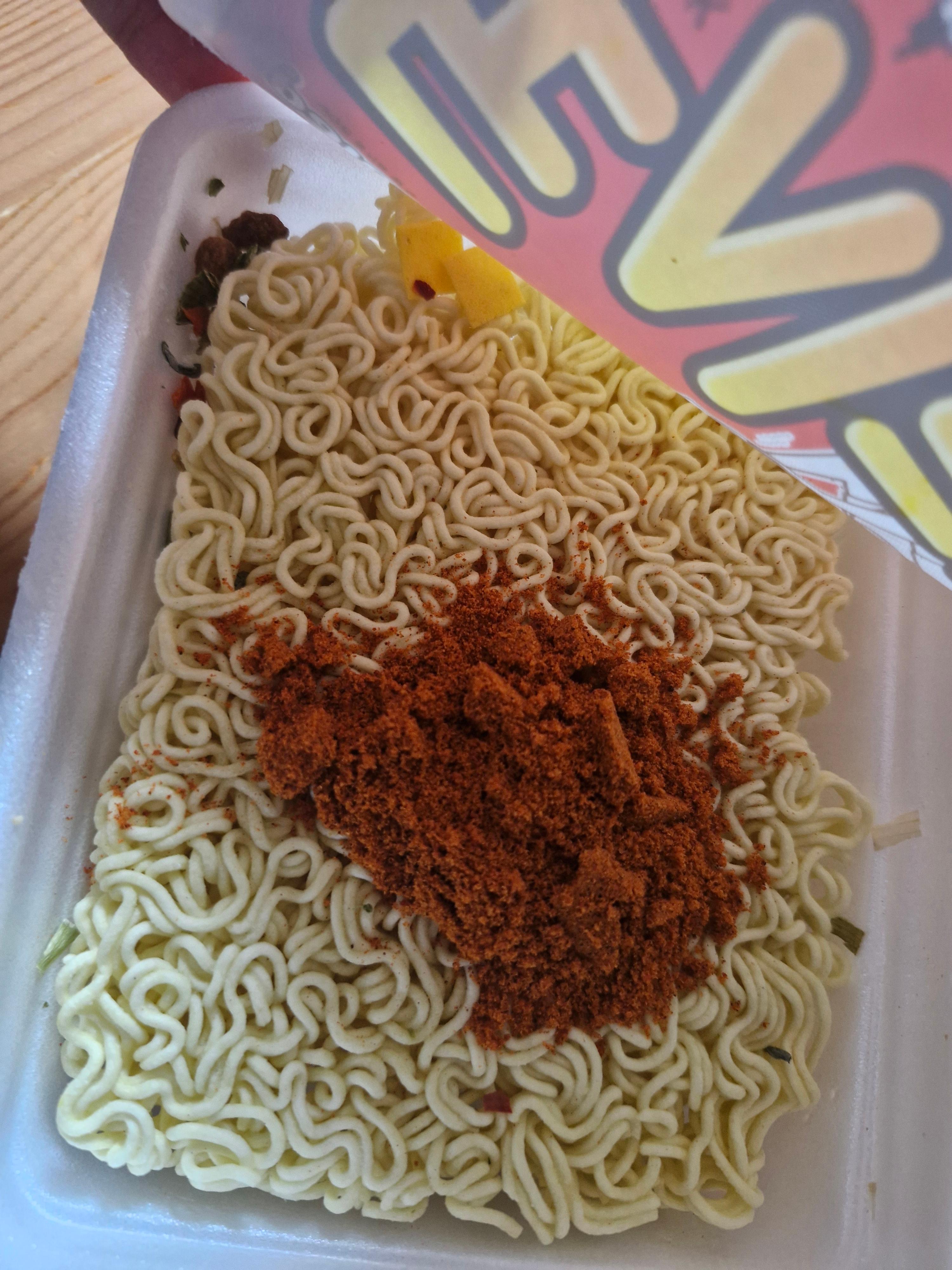 뚜껑을 열고 라면수프를 부어놓은 모습.