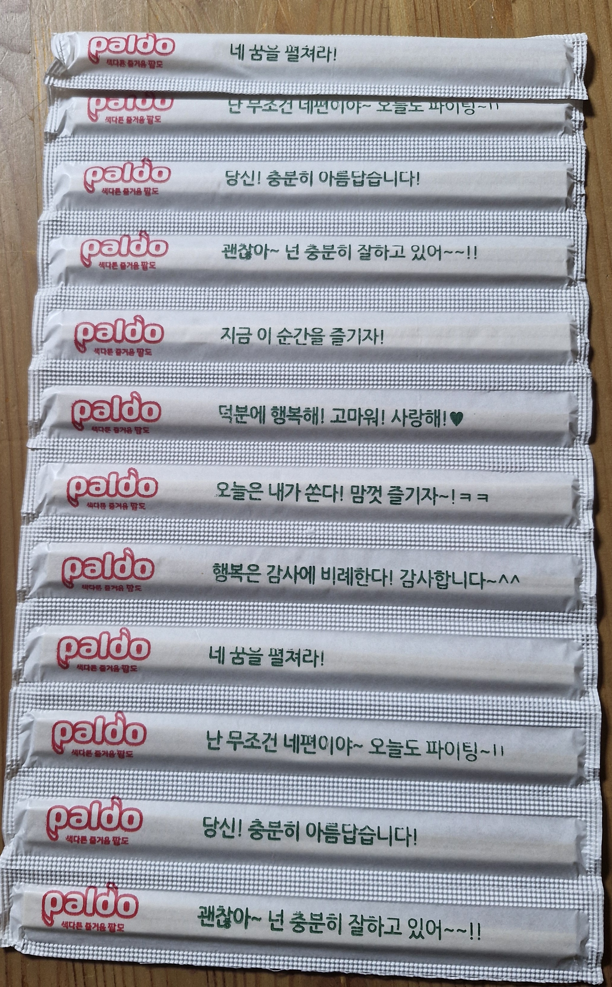 각 나무젓가락마다 좋은 문장이 하나씩 적혀있다.