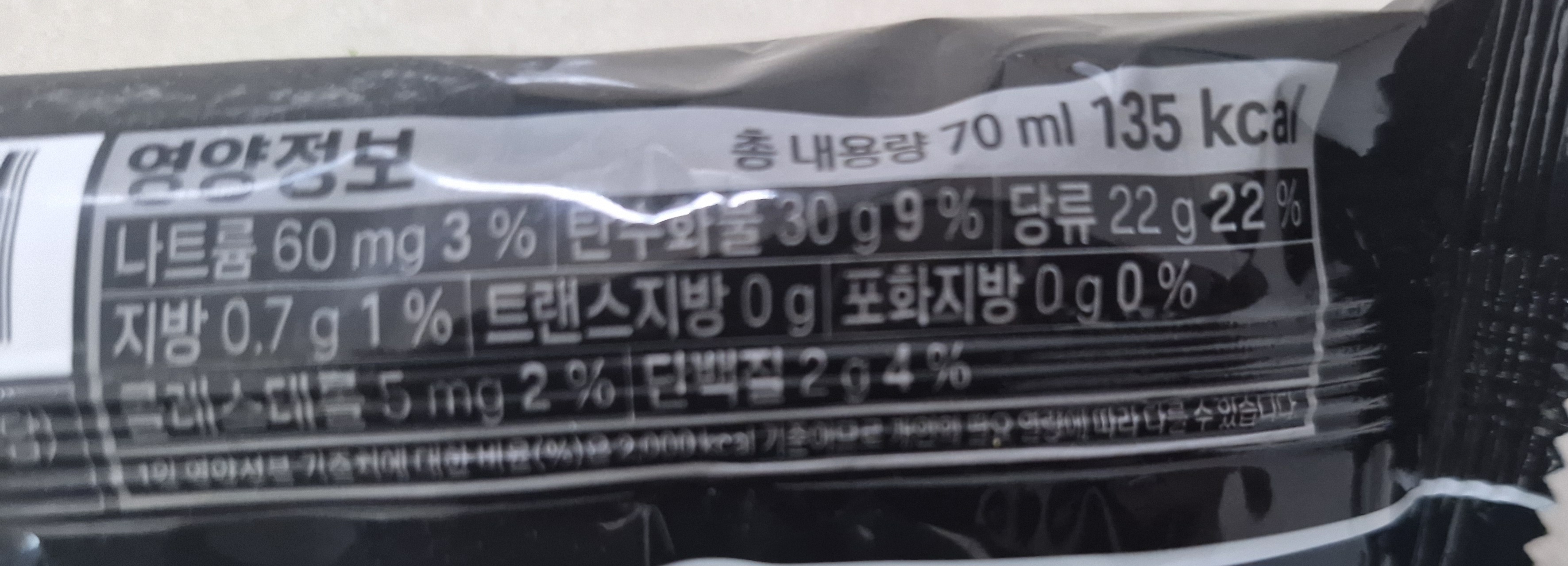 제품 좌측 하단에 열량정보와 성분함유량 정보가 간단하게 표시가 되어 있다.