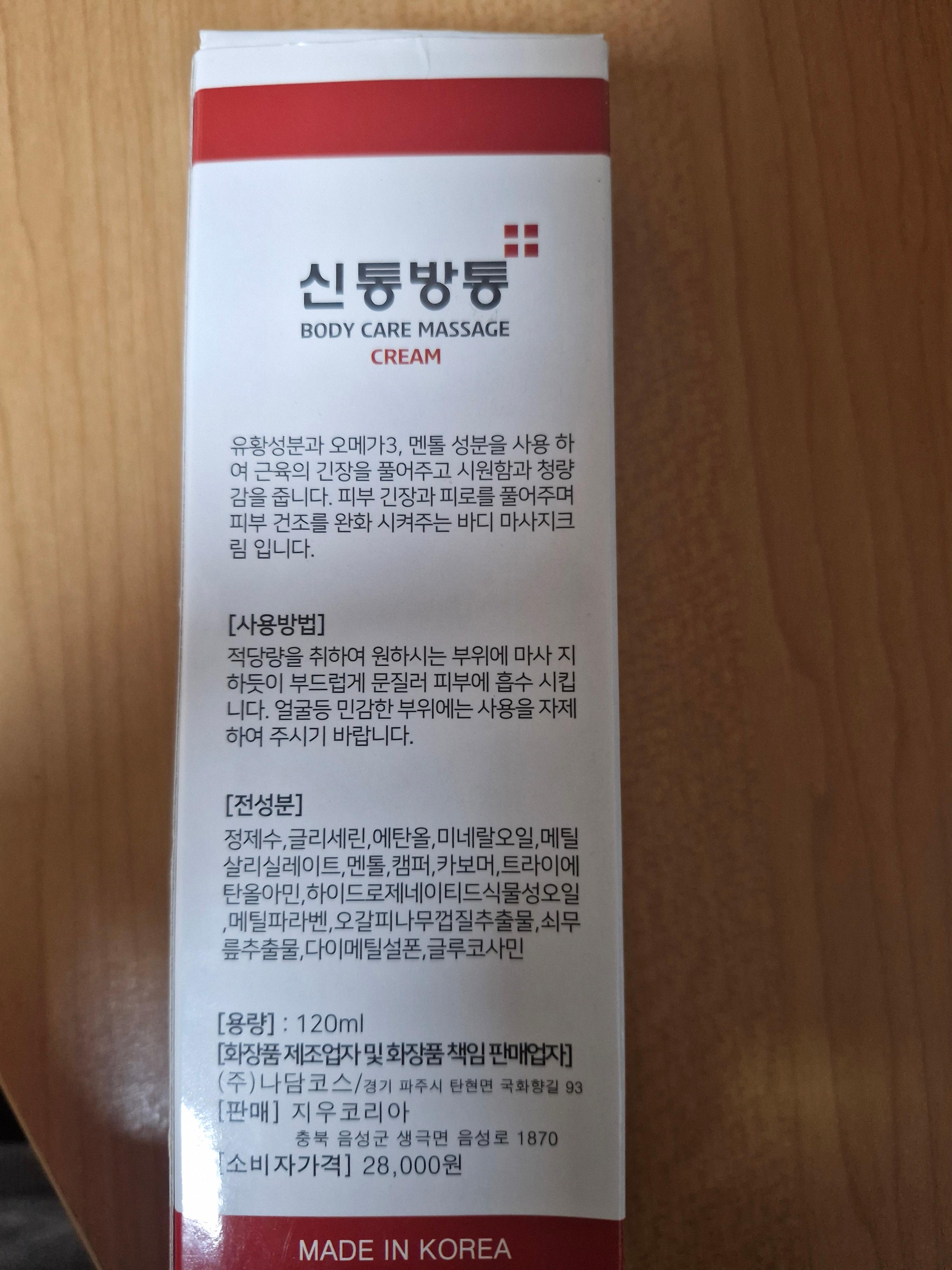 오늘은 피부에 바르는 "신통방통"이라는 마사지 크림에 대한 소개를 하겠다.