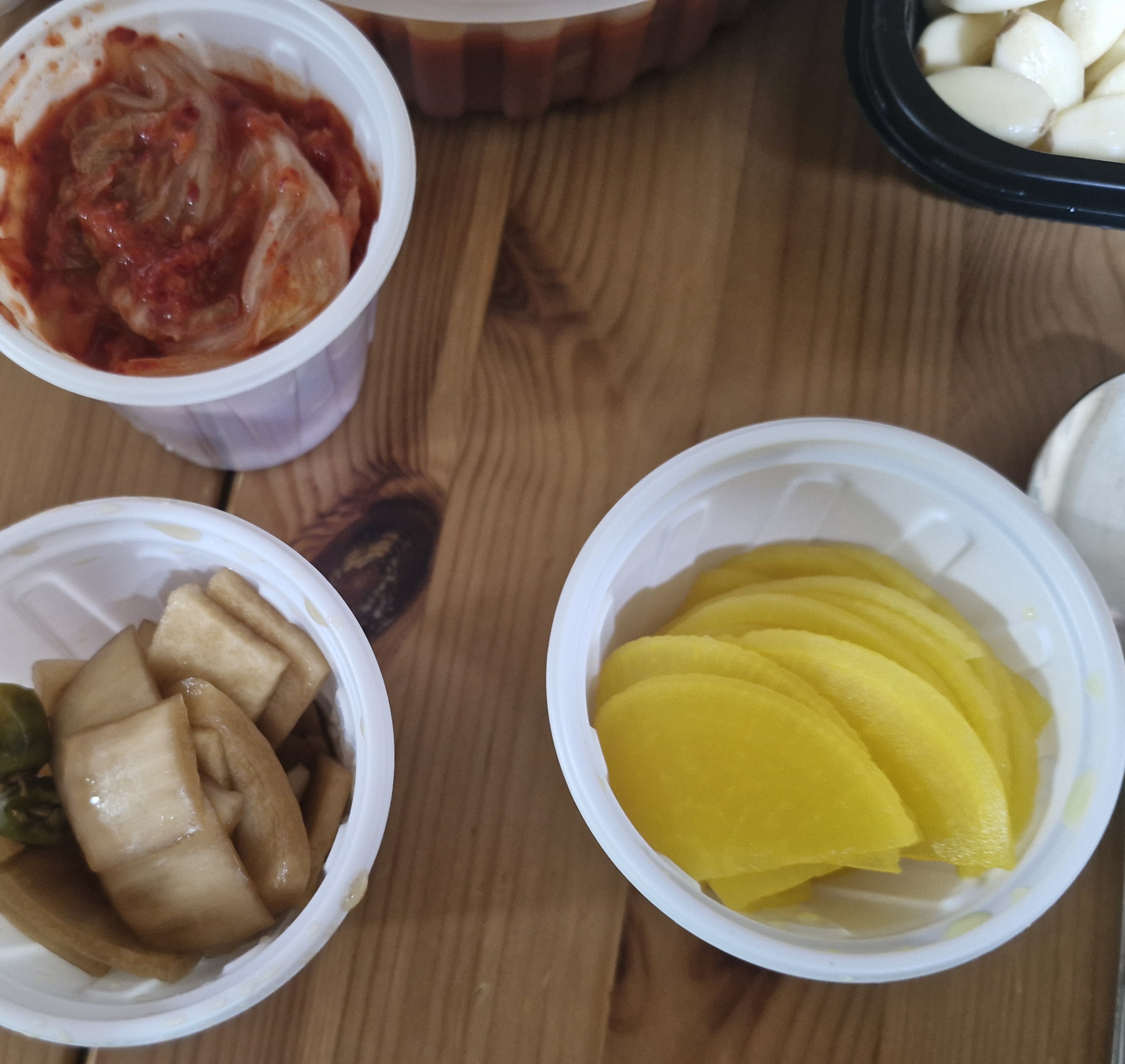 밑반찬으로 온 단무지, 양파절임, 김치.