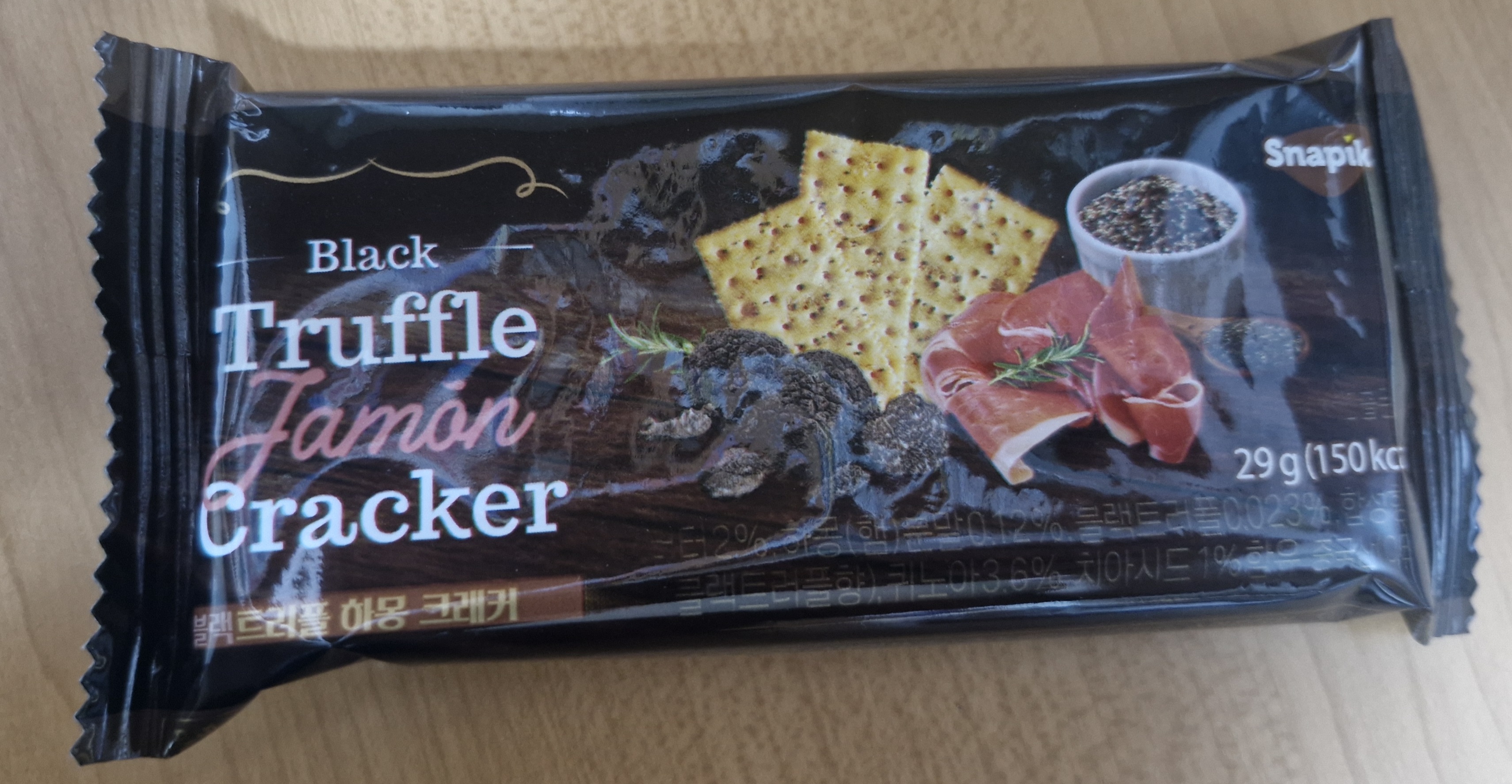 오늘은 "블랙트러플 하몽 크래커"라는 과자에 관한 소개를 하겠습니다.