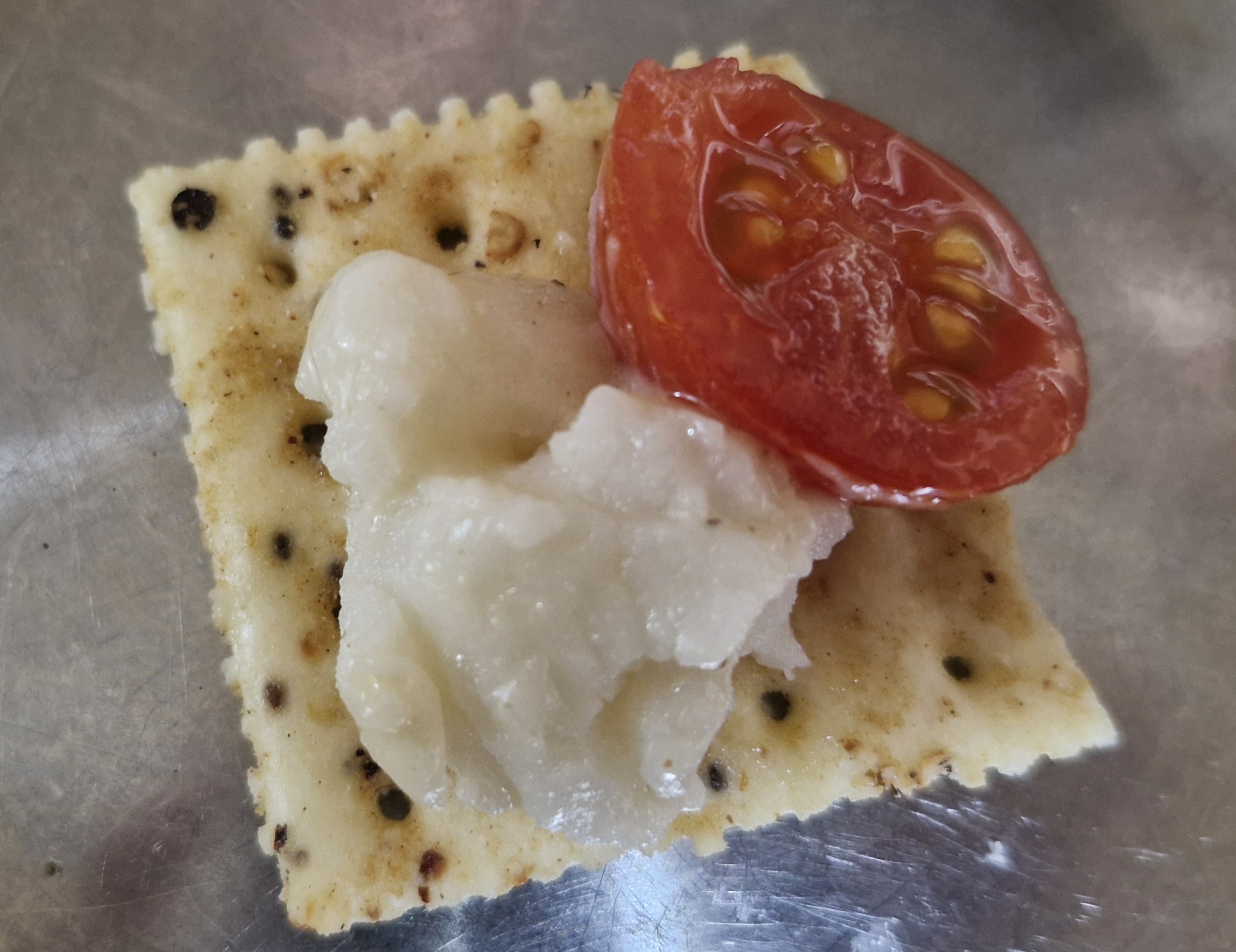 크래커를 반으로 쪼개서 그 위에 여러가지 재료를