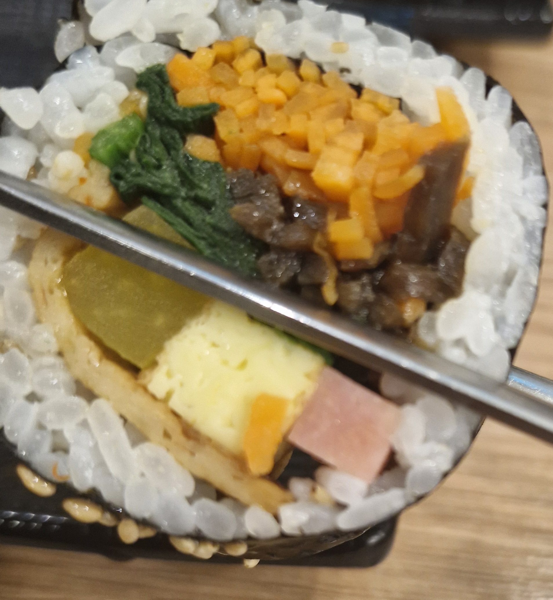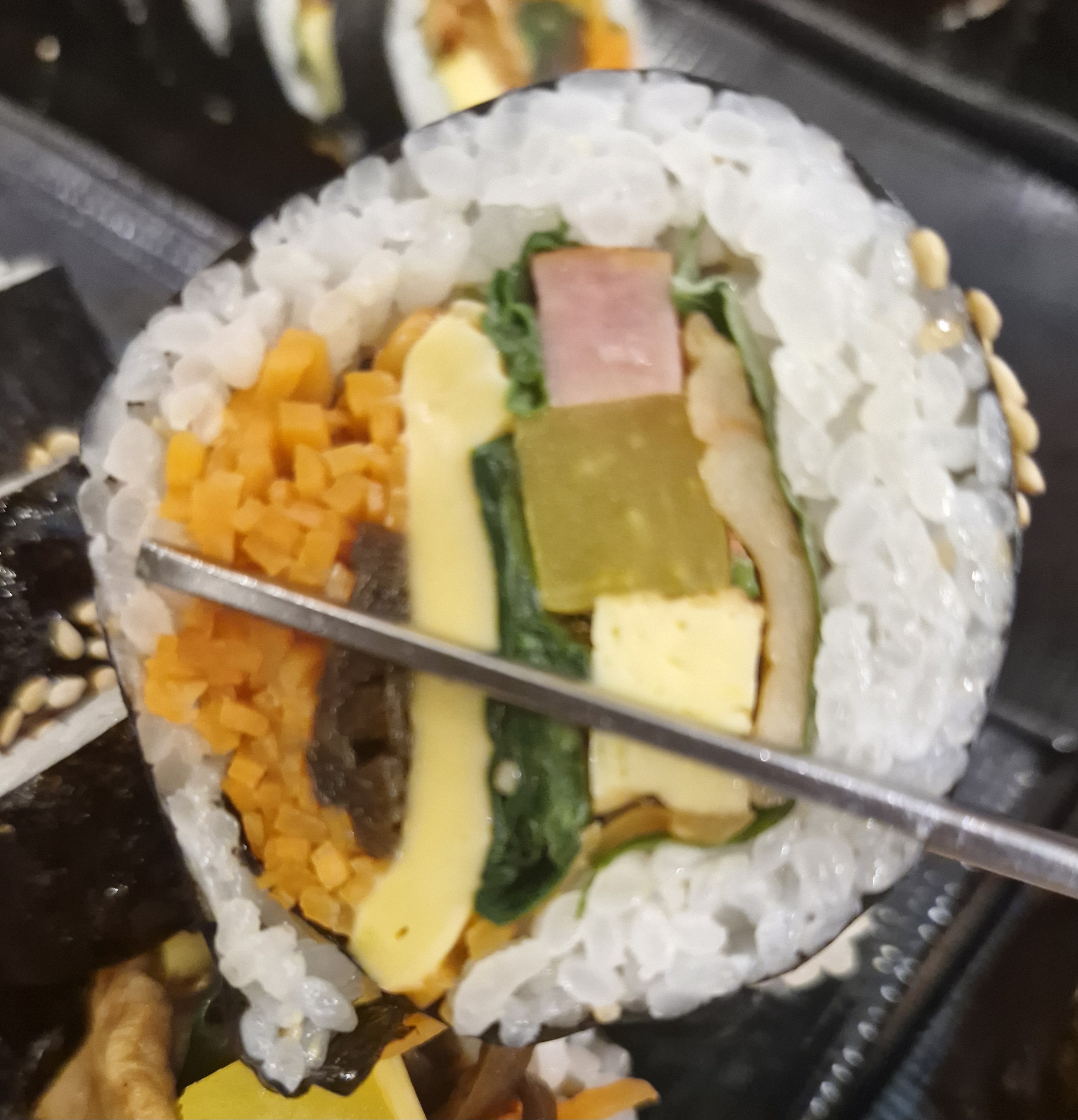 위의 김밥은 싸다김밥, 가운데의 김밥은 제육김밥, 아래의 김밥은 치즈김밥.