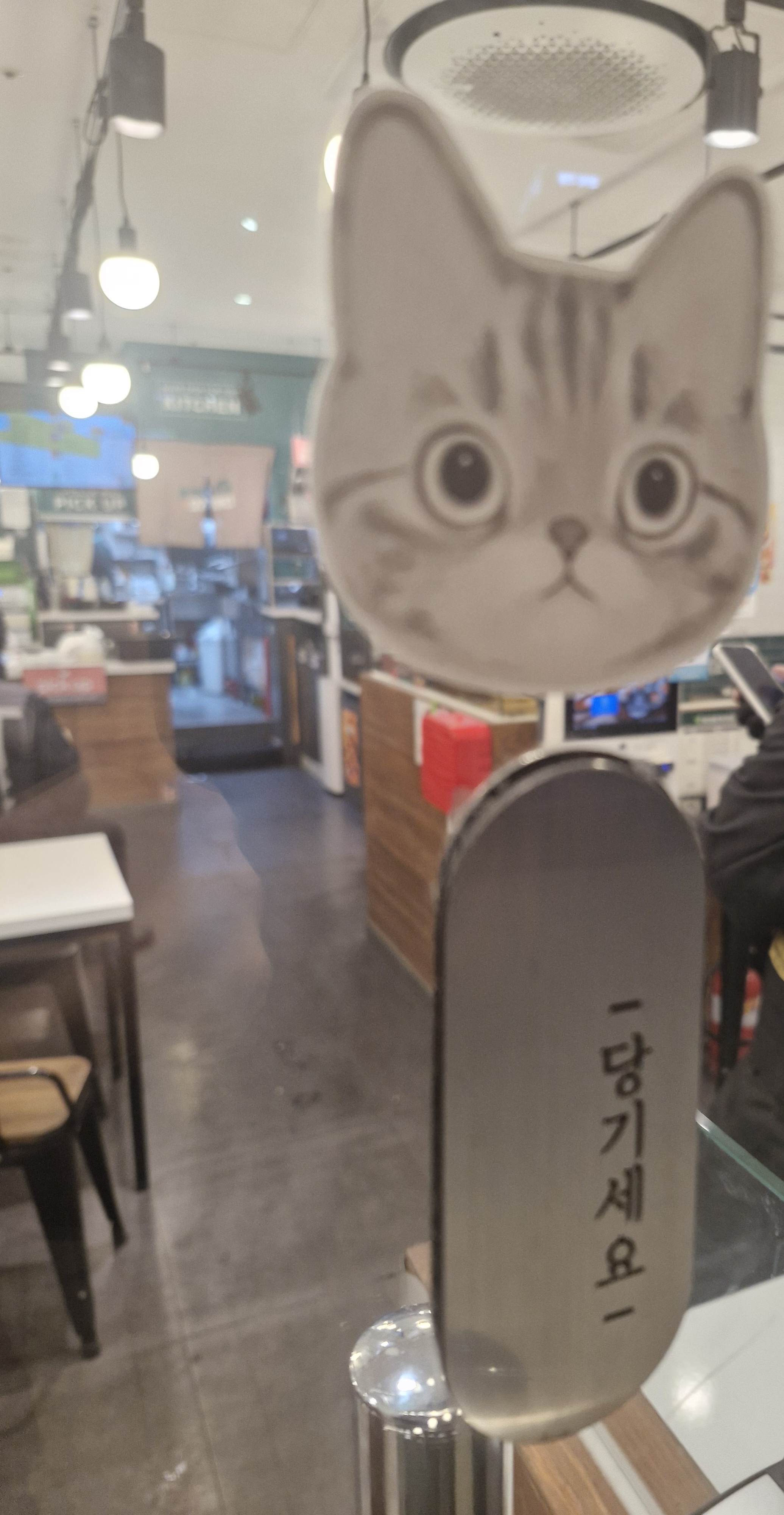 출입문에 붙어있는 당기세요 쪽지가 감성적이고,