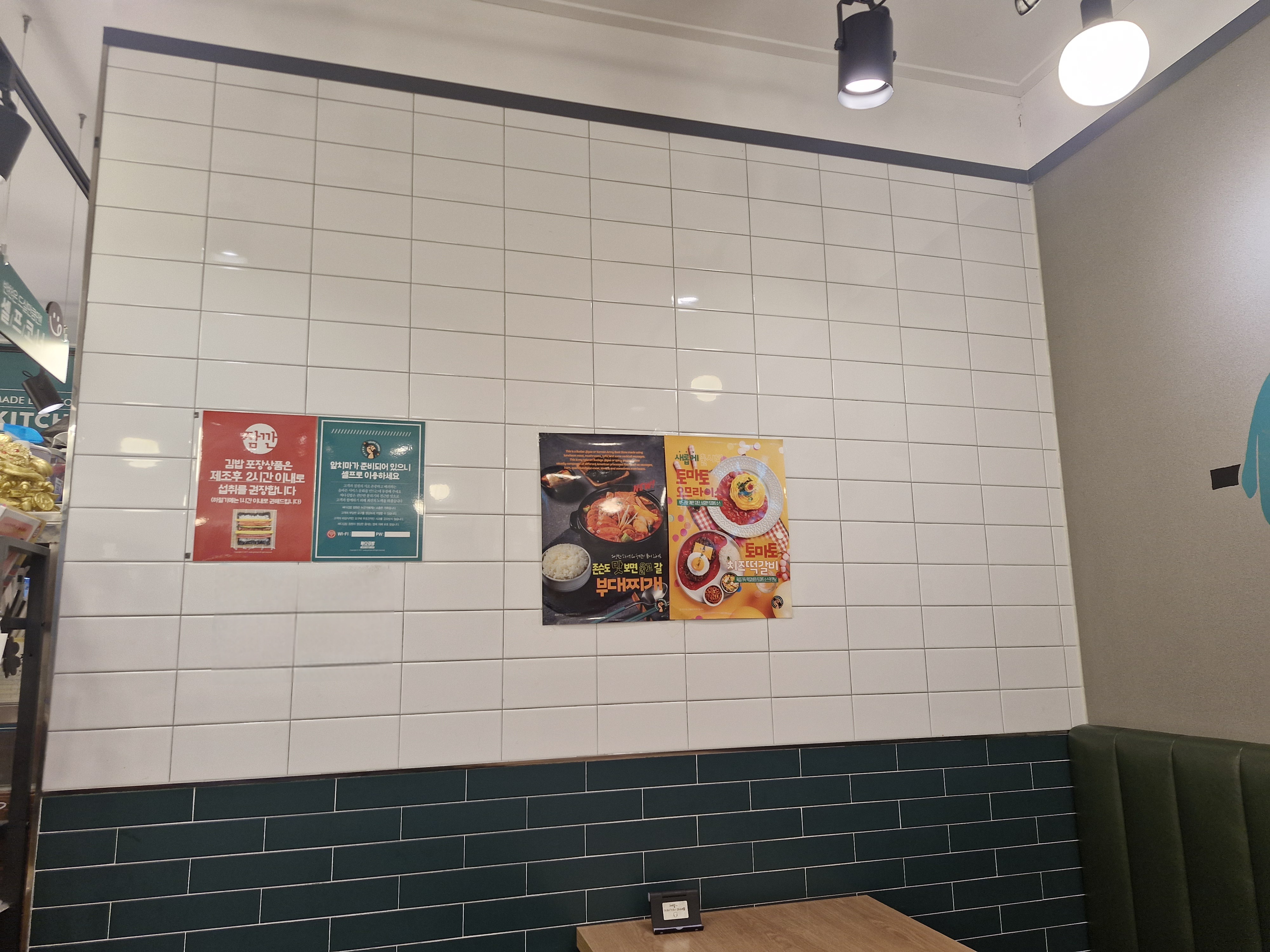이 식당의 주요 메뉴를 홍보하는 포스터가 부착되어 있다.