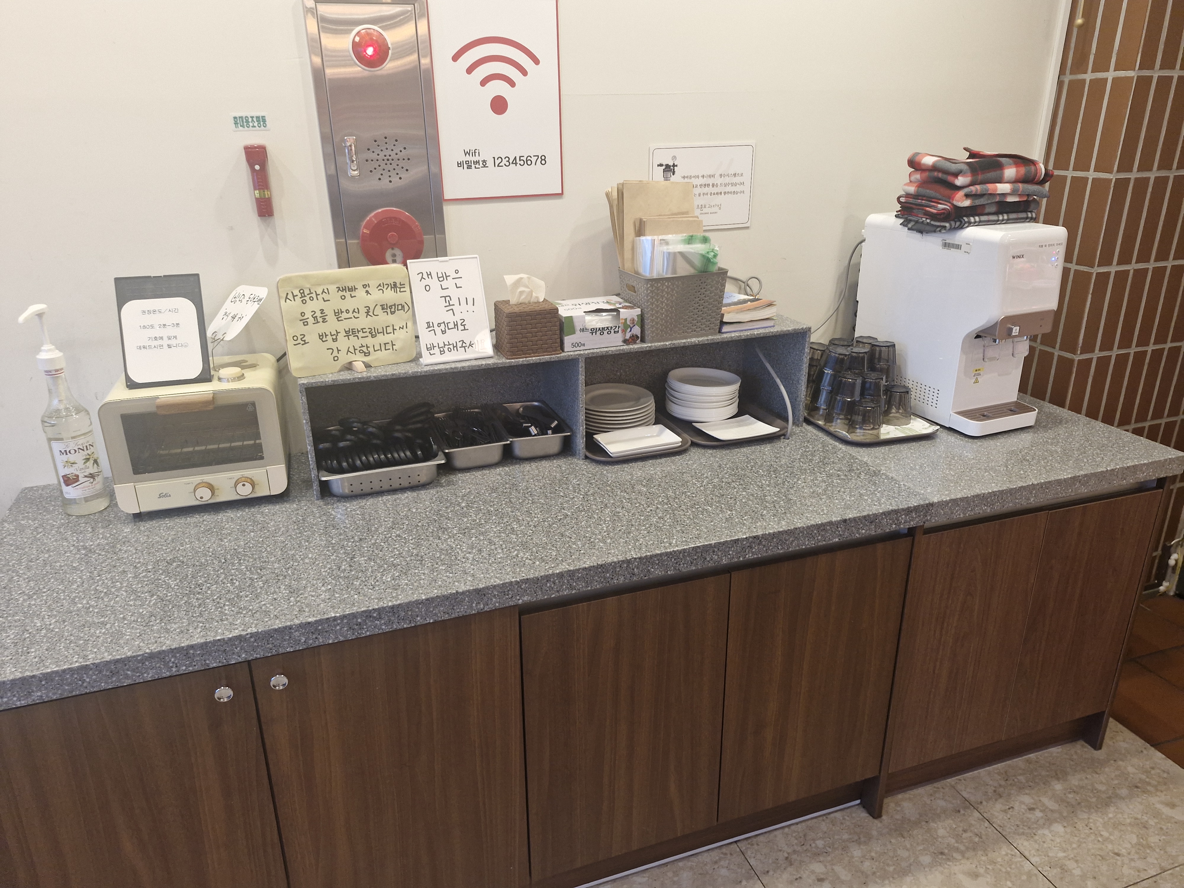 자리 뒤에 술 전용 냉장고, 정수기, 밑반찬,