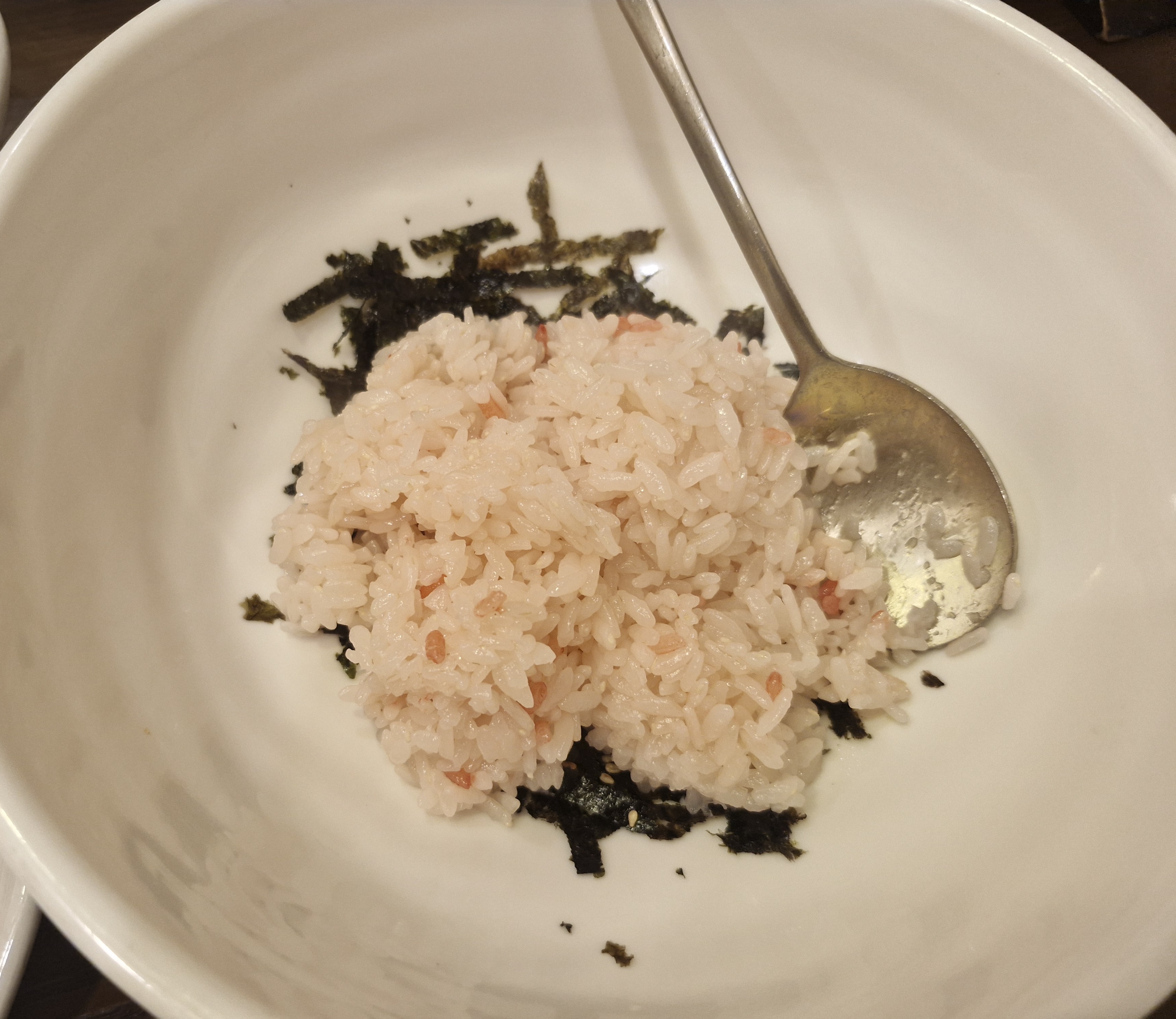 밥이 살짝 붉은색의 빛을 띠고 있다.