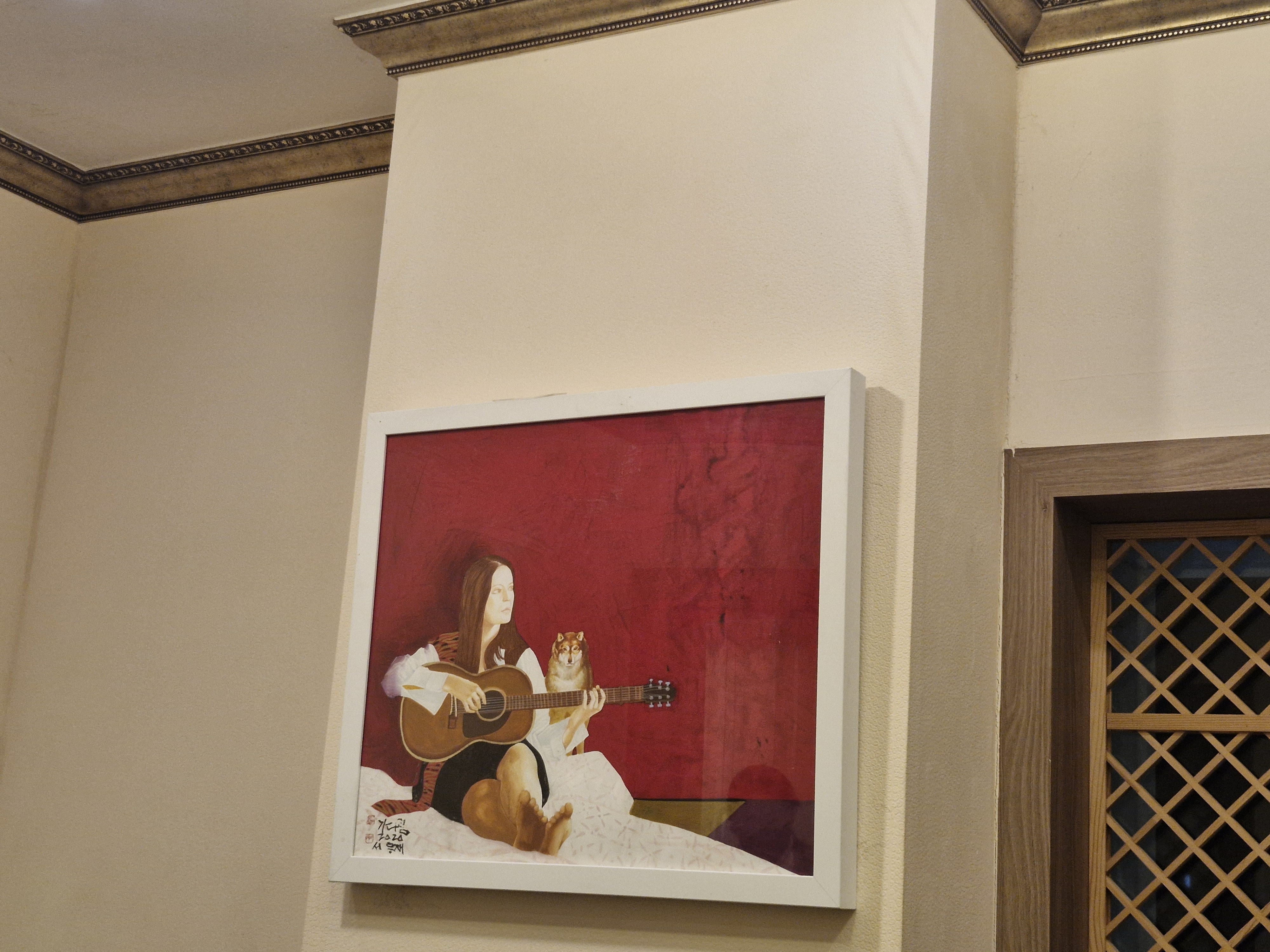 기타를 연주하고 있는 모습이 담긴 그림이 걸려있다.