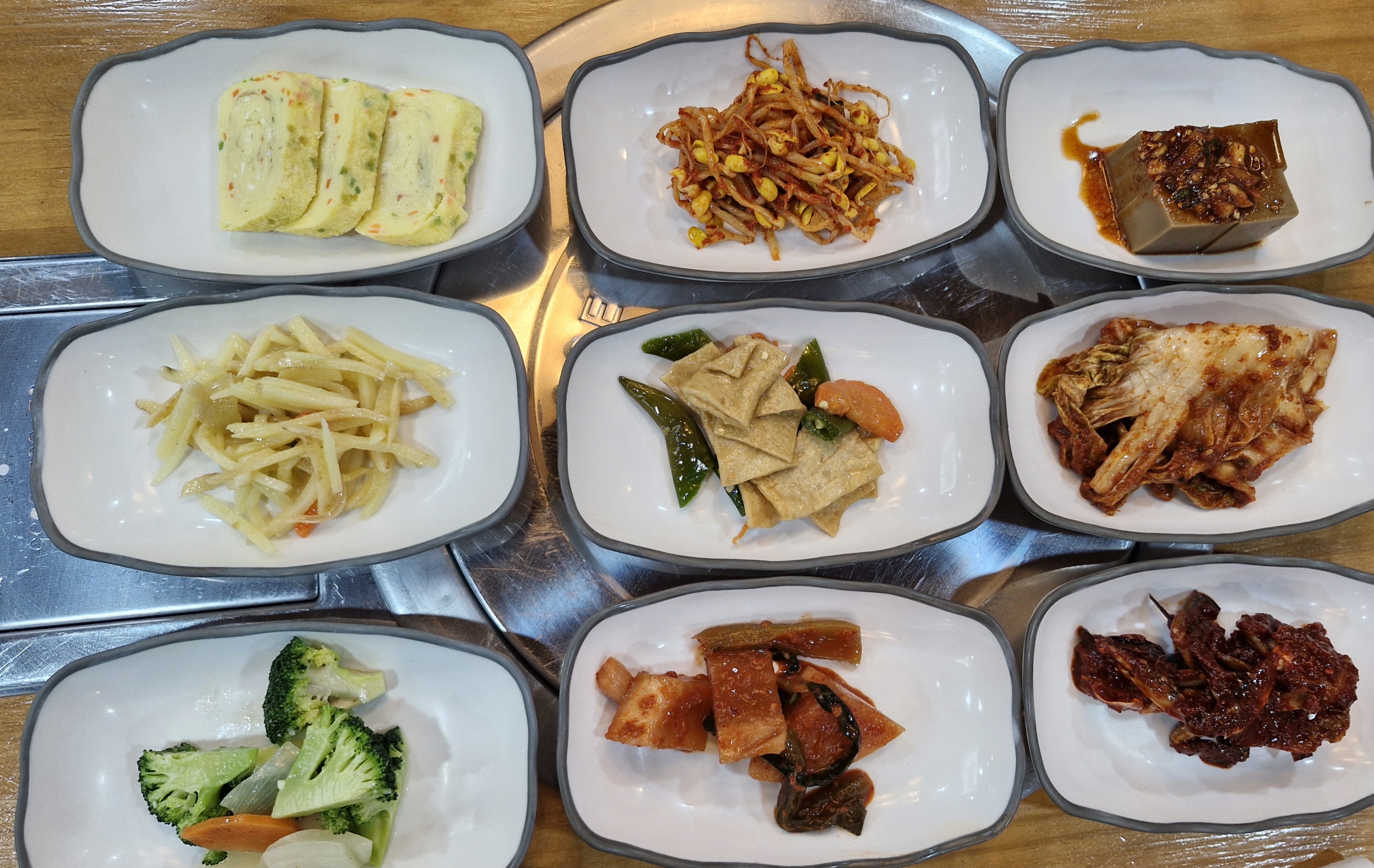 일단 음식을 주문하면 9가지의 맛있는 반찬들이 나온다.