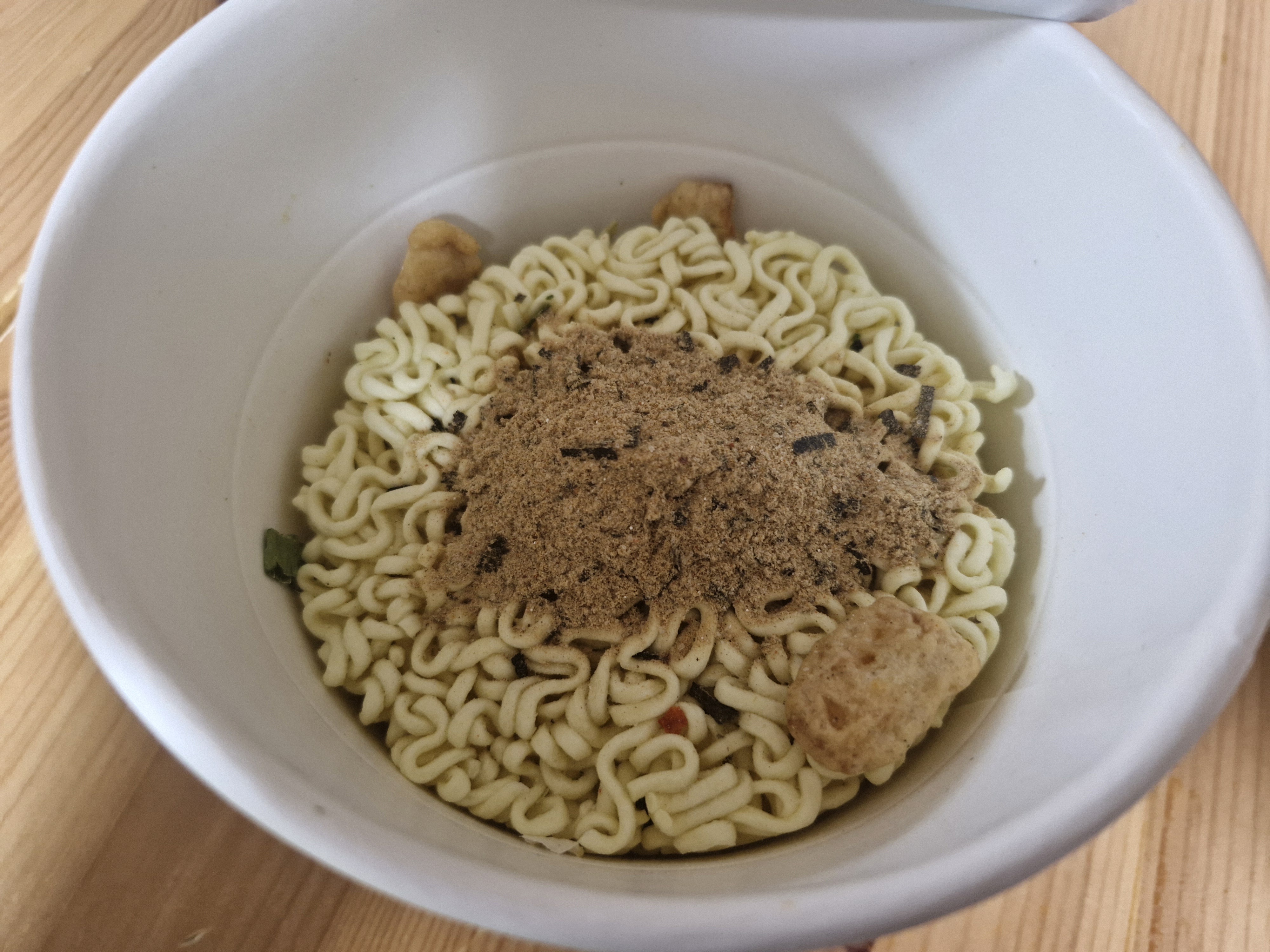 용기에 뜨거운 물을 붓고 3분 기다리면 맛있는 튀김우동이 완성된다.